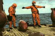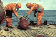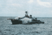 Start einer Seezielrakete von der "Heinrich Dorrenbach" |
