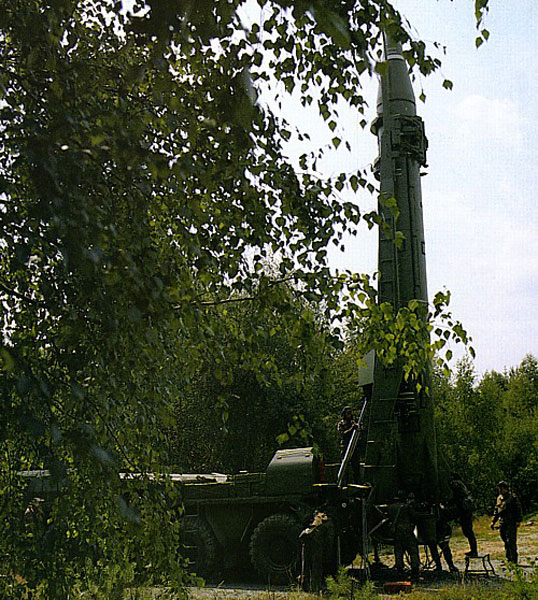 Feueraufgabe am Heck der Startrampe 9P117M/M1.