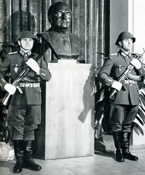 Offiziersehrenwache an der Büste des ersten Präsidenten der DDR, Wilhelm Pieck.