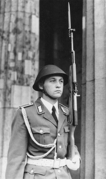 Ein Ehrenposten vor dem Mahnmal für die Opfer des Faschismus in Berlin am 25.07.1979