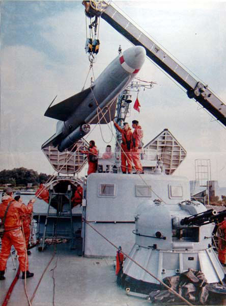 einer Rakete P-15 "Termit" auf ein Raketenschnellboot