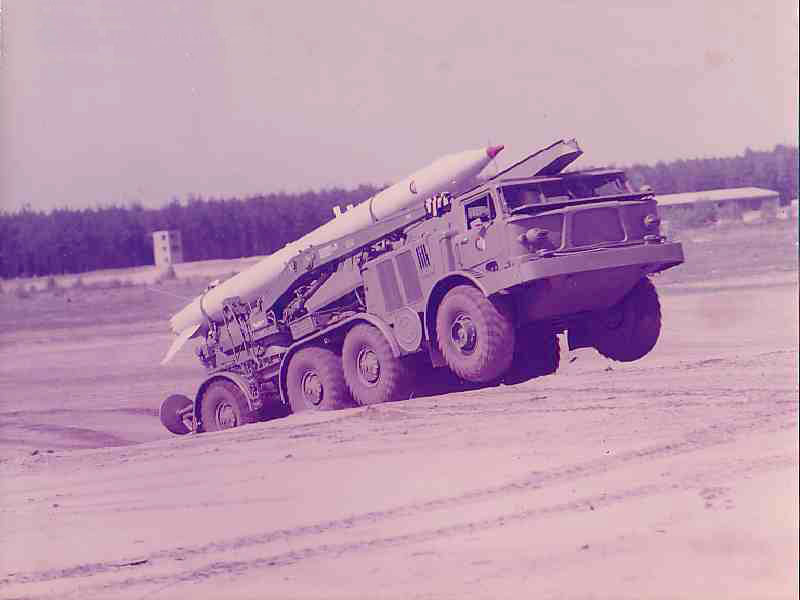 Das Foto zeigt eine Startrampe 9P113 System Luna M auf Kfz. Zil 135 LM. Es wurde im Ausbildungsgelände der RA-9 in Spechtberg Neumühl aufgenommen. Wurde im Rahmen einer Dokumentation durch die Armeerundschau ca. 1975/76 aufgenommen. Das takt. Raketensystem Luna M war ab 1968 in der NVA im Einsatz.